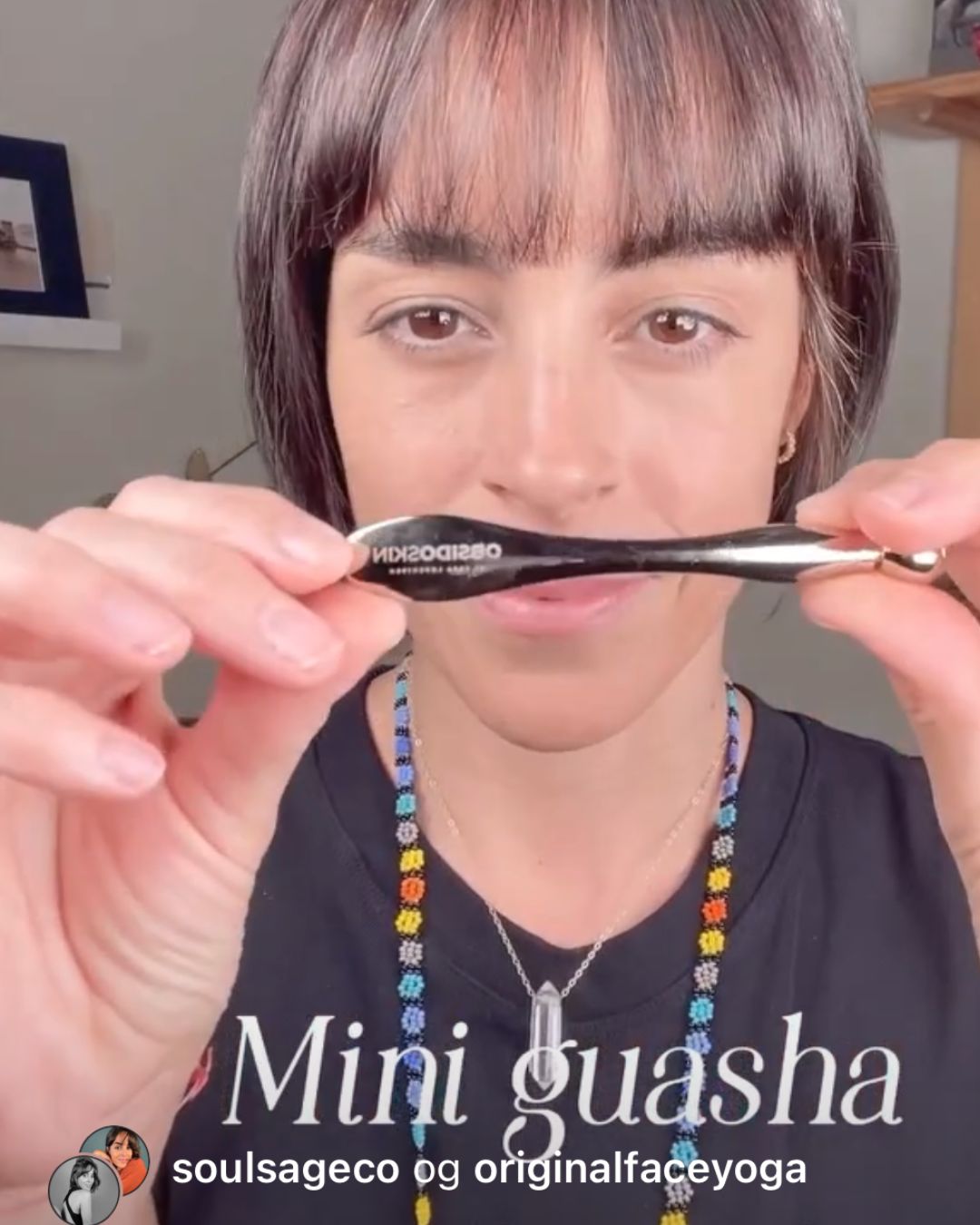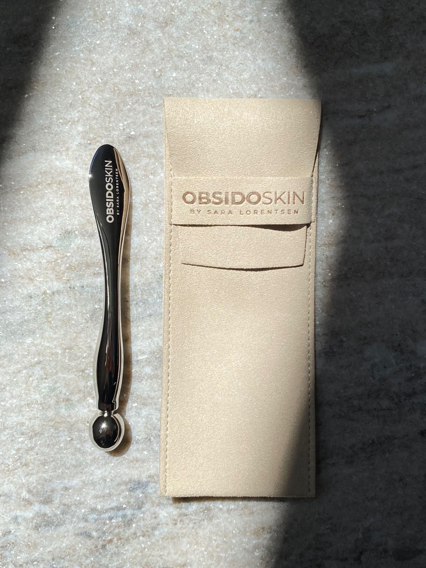 This is the OBSIDO® Mini Gua Sha , designed by Sara Lorentsen, a compact beauty tool that offers both functionality and style.